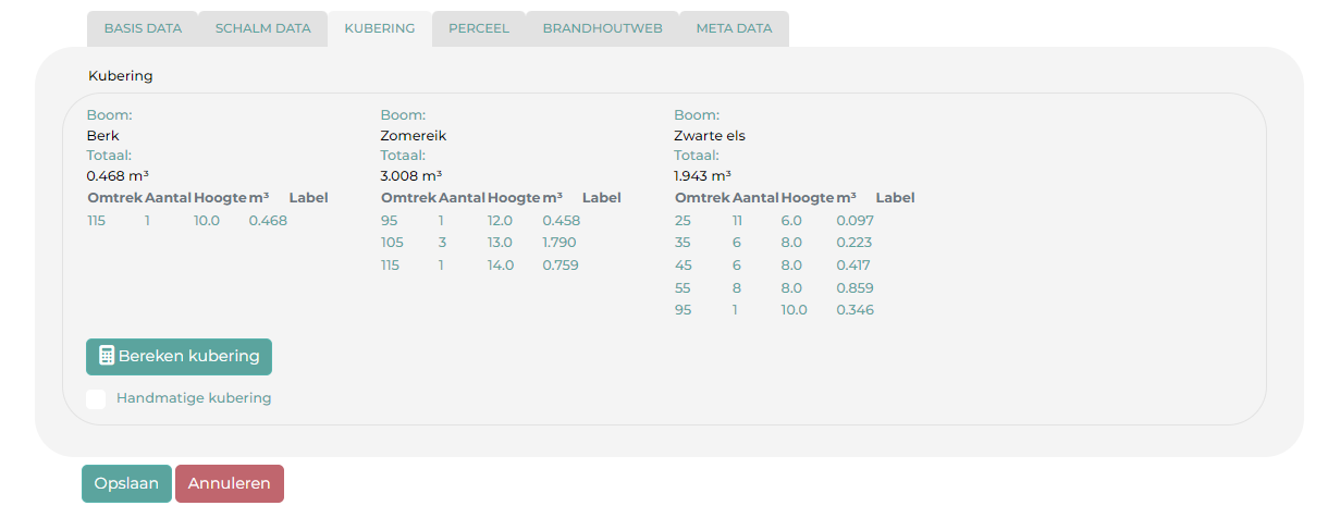 Klik op het tabblad Kubering: je kan nu kiezen tussen een automatische berekening of een handmatige berekening. Vink voor deze laatste optie het vinkje aan. Daarna kan je de kubering in m³ en details invoeren.