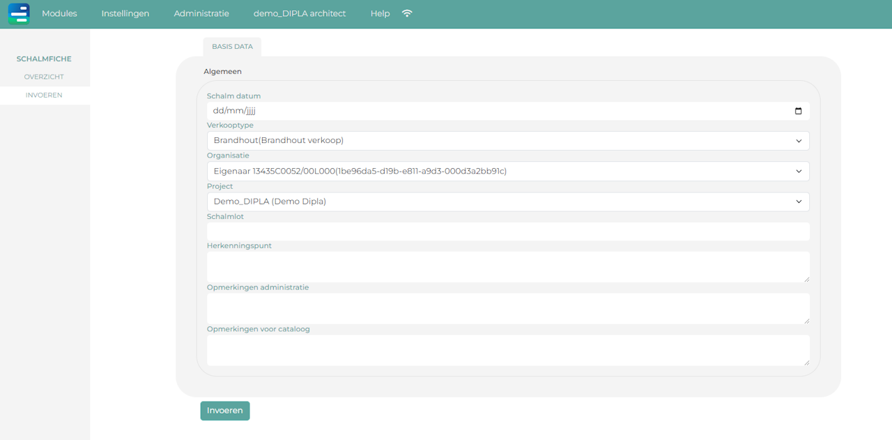 Selecteer het project waarin de schalmfiche gebruikt gaat worden. (Indien je een schalmfiche aanmaakt vanuit een element, zal dit reeds ingevuld zijn)