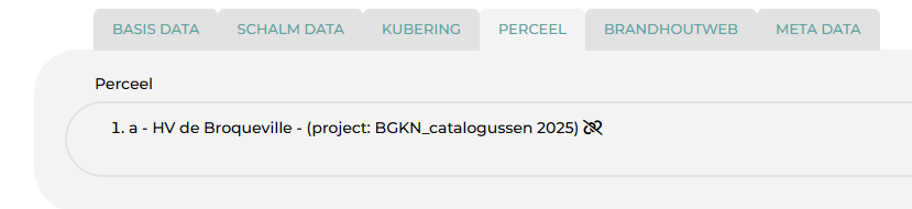 Indien je schalmfiche aan een perceel gekoppeld is, kan je in het tabblad Perceel ook zien aan welk perceel (en in welk project) het gekoppeld is.