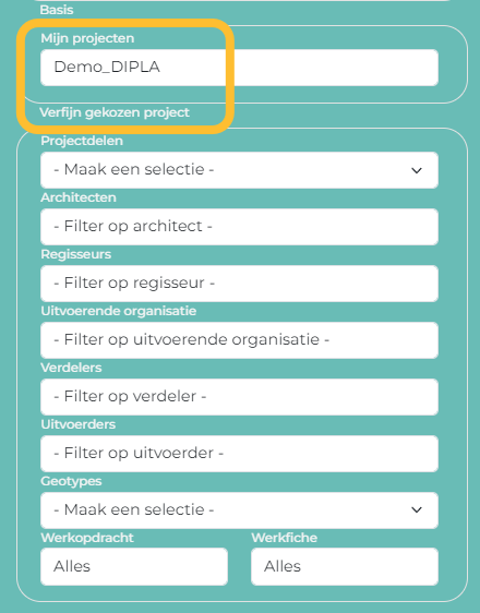 Afhankelijk van je rol(len) binnen Dipla, zullen deze filters meer of minder uitgebreid zijn. De velden bij Verfijn reageren op wat je kiest bij Basis: