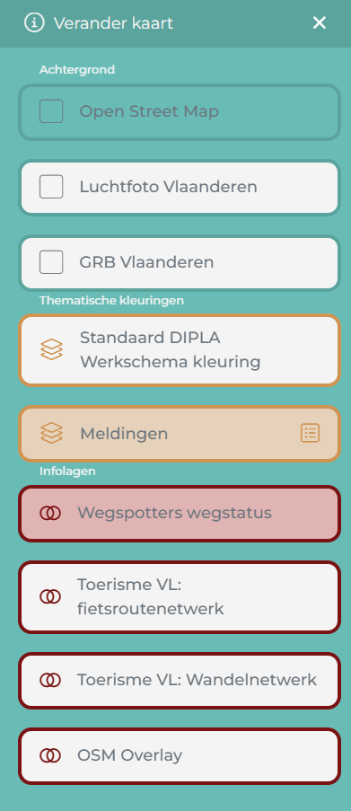 Indien je trage wegen opvolgt met Dipla Meldingen, zet je ook de kleuring 'Wegspotters wegstatus' aan.