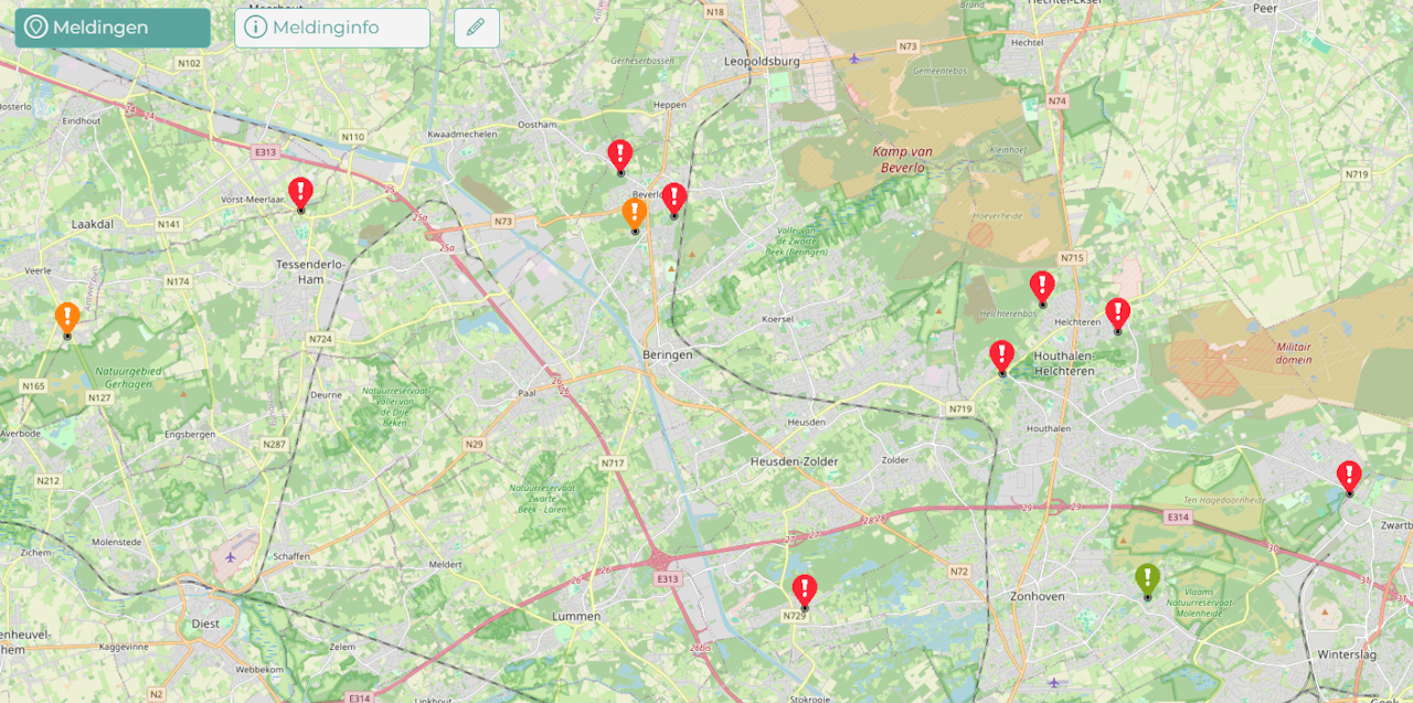 Als organisatie kan je één of meerdere projecten hebben waar meldingen in terechtkomen. Dit wordt ingesteld door Dipla na overleg. Er wordt een regio ingesteld per project waardoor de meldingen naar het juiste project gerouteerd worden.