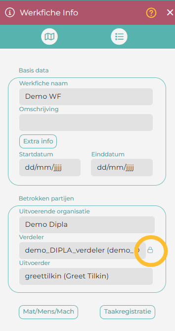 Verdeler: hier zie je de naam van de verdeler. Wanneer je zelf verdeler bent, heb je het recht om info te wijzigen. Wanneer iemand anders verdeler is, kan je enkel naar de info kijken. Je kan ook op het slotje klikken om jezelf of iemand anders verdeler te maken.